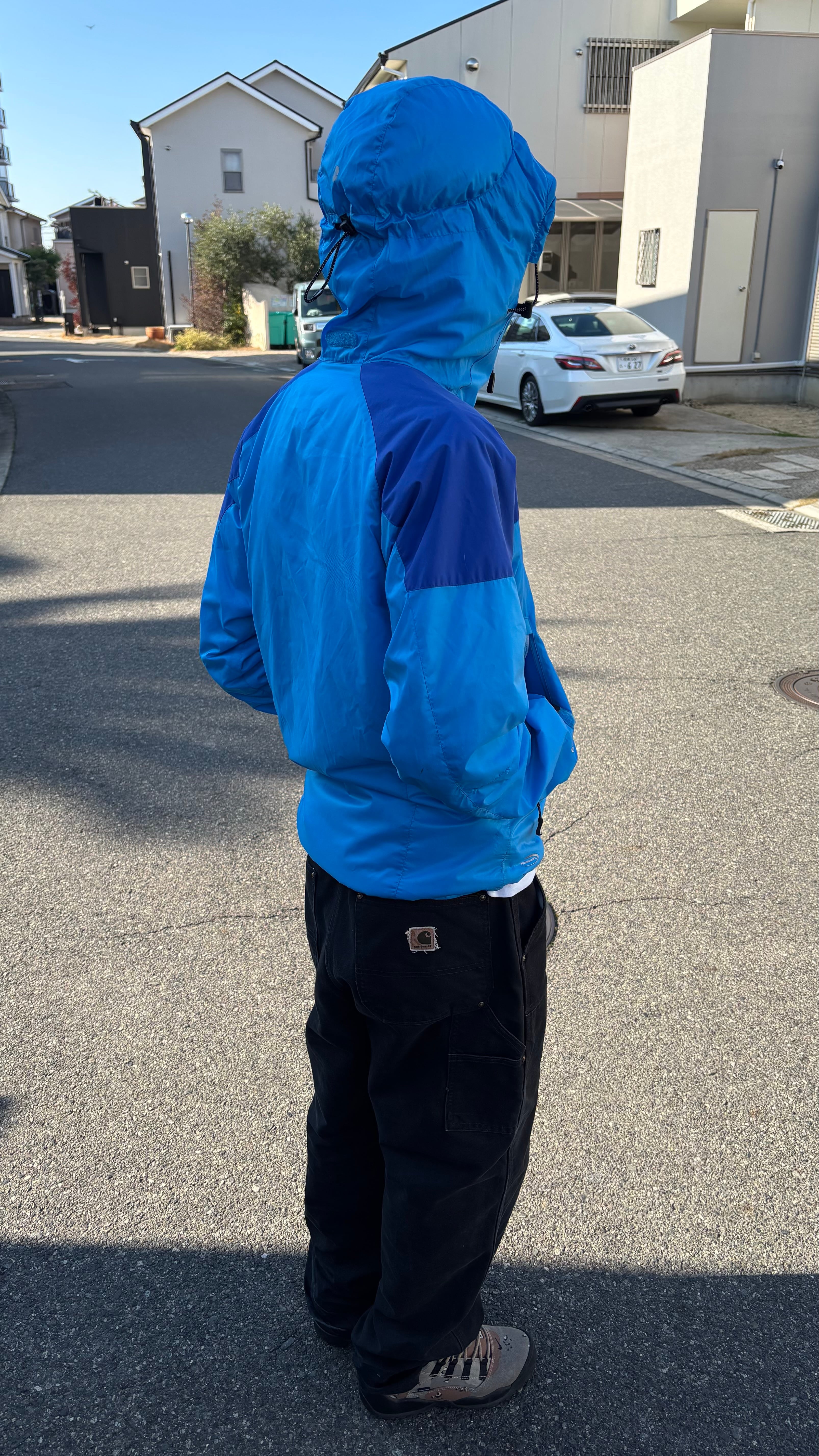 フードは収納可能で、フード被った時の
